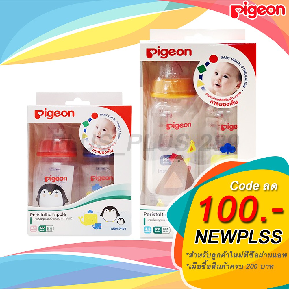 - Pigeon ขวดนมพีเจ้น คอแคบ RPP ลายพัฒนาการ 4oz. / 8oz. แพคคู่ ซื้อที่ไหน