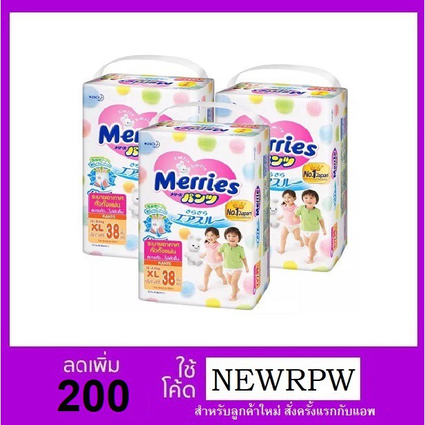 - อ่านรีวิว Merries ผ้าอ้อมเมอร์รี่ส์ชนิดกางเกง ไซส์ XL38 (บรรจุ 3แพ็ค รวม 114ชิ้น)